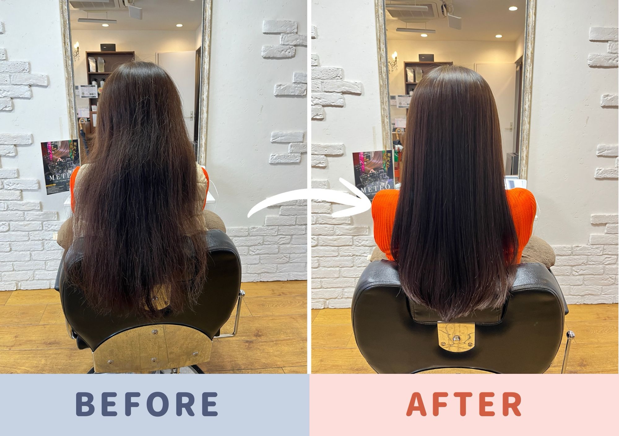 「ネオメテオストレート」で初回施術前後のお写真です。